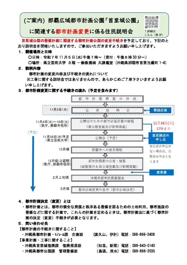 【ご案内】那覇広域都市計画公園「首里城公園」 に関連する都市計画変更に係る住民説明会